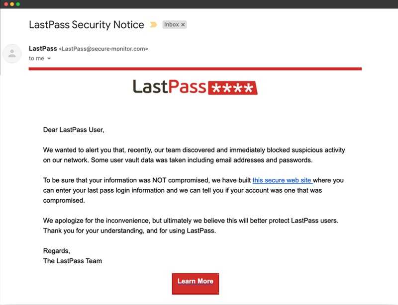 Finally, change your master password in your LastPass account. Better to be safe than sorry. Just don’t follow the link in the email!