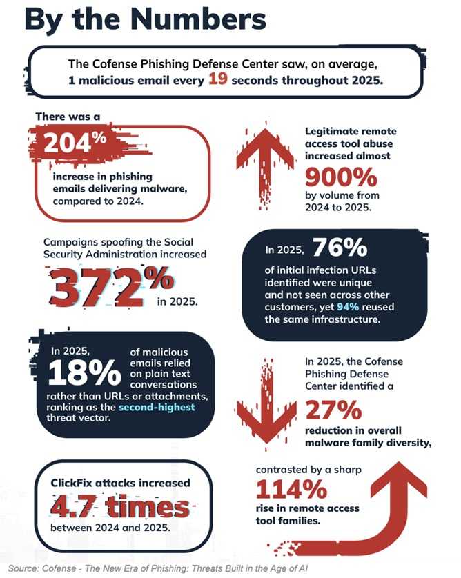 Phishing has always been a numbers game. Now artificial intelligence has turned it into a high-speed assembly line. In its report, “The New Era of Phishing: Threats Built in the Age of AI,” Cofense reveals that an AI-powered phishing attack hits inboxes every 19 seconds. That means possibly, in the time it takes you to read this paragraph, several more have already landed somewhere.