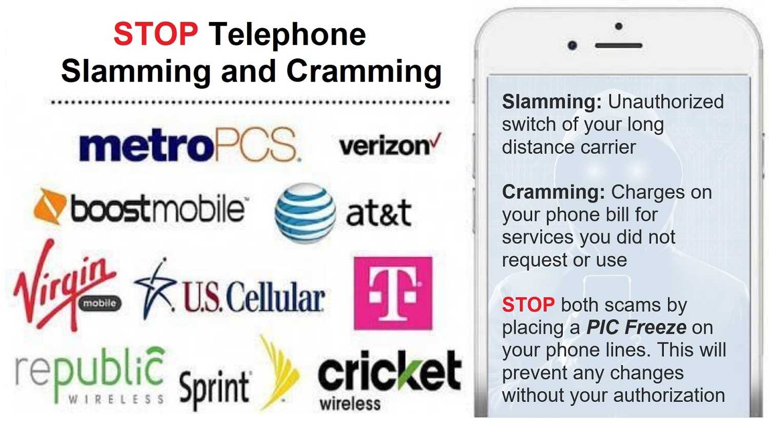 - Consider placing a “freeze” on your phone account that will keep others from making any changes without your consent.